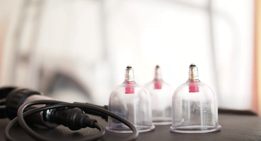 mit den Händen des Therapeuten und eventuell weiteren Hilfsmitteln wie z.B. Schröpfgläsern.